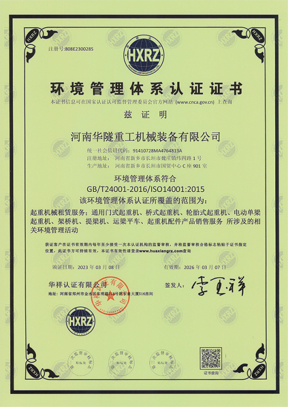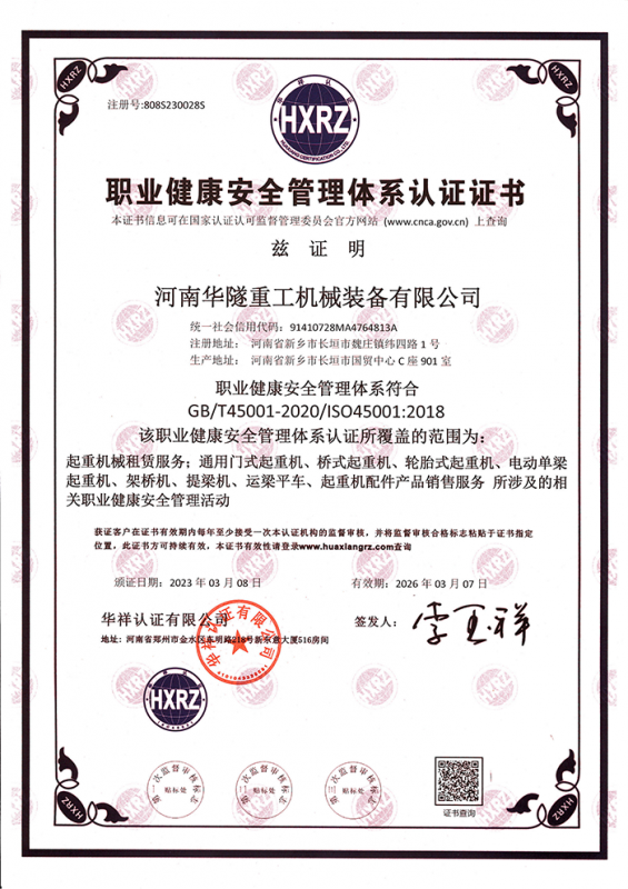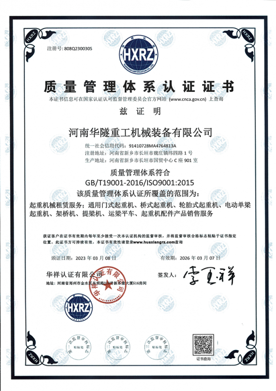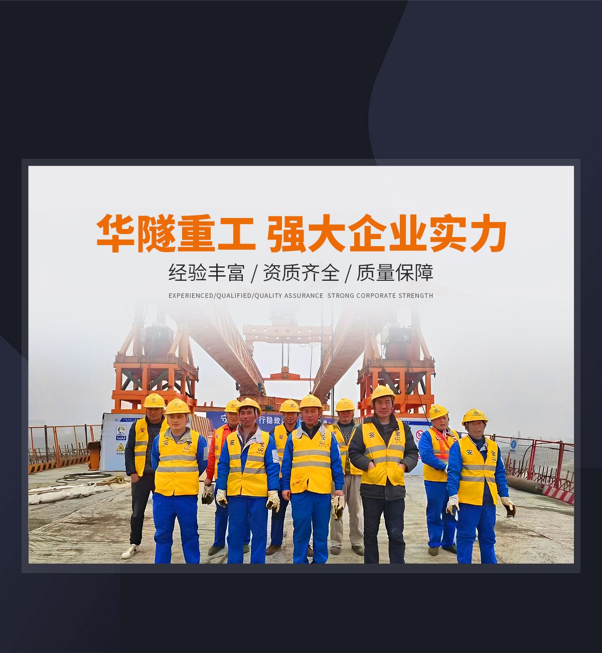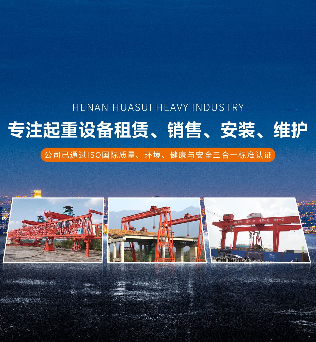 河南華隧重工機械裝備有限公司主要從事通用門式起重機、橋式起重機、電動單梁起重機,輪胎式起重機、架橋機、提梁機、遠梁平車、鋼絲繩電動萌蘆、卷揚機、起重配件制造、銷售:起重機械租賃、安裝和維修,起重設(shè)備園收,機械設(shè)備維修,鋼結(jié)構(gòu)工程承包,橋梁工程及技術(shù)咨淘服務(wù),銷售五金制品、機電設(shè)備:建設(shè)工程監(jiān)理,建設(shè)工程設(shè)計,各類工程建設(shè)活動,建筑勞務(wù)分包,建筑物折除作業(yè),施工作業(yè),工程管理服務(wù),土石方工程施工,裝如發(fā)運。  公司已通過IS0國際質(zhì)量、環(huán)境、健康與安全三合一標(biāo)準(zhǔn)認證,特種設(shè)備制造許可證和特種設(shè)備安裝改造維修許可證。擁有完熟的質(zhì)量管理體系。嚴格的管理制度,強大的生產(chǎn)能力和先進的檢測手段,在保證產(chǎn)品質(zhì)量的同時,也具備了極強的市場競爭力。  公司堅持科技創(chuàng)新為理念,產(chǎn)品質(zhì)量為核心,注重信譽,建立了減信可靠、快捷、思速。便利周到的售后服務(wù)網(wǎng)絡(luò)。  我們擁有的技術(shù)專家和技術(shù)服務(wù)隊伍為客戶提供充善的售前技術(shù)支持和全天候的售后服務(wù)體系,讓您無后顧之憂,享受一站式的超值服務(wù)。  “華隧重工,伴您成功“是華隧重工永遠的宗指,真被的希望與各界朋友攜手并進。共創(chuàng)輝準(zhǔn)!